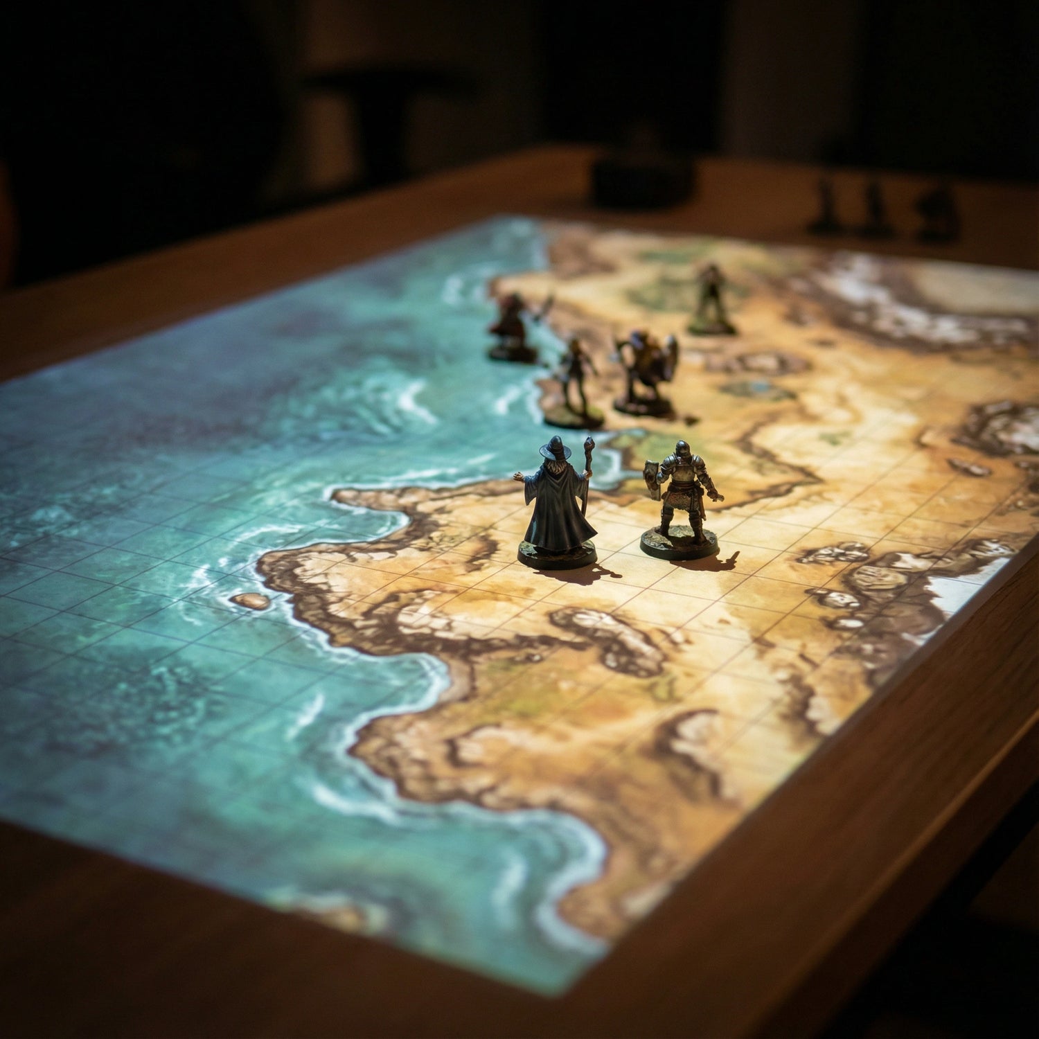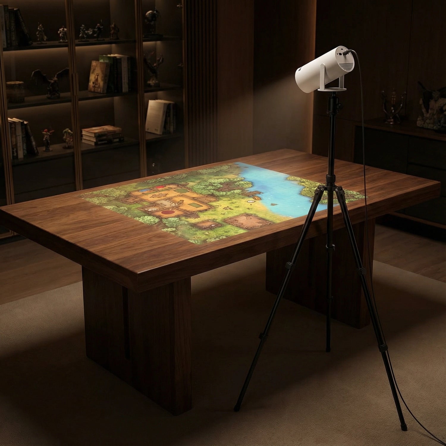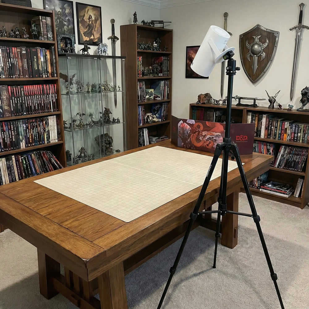 Project your battle map directly onto the table surface with clear grids and terrain details.