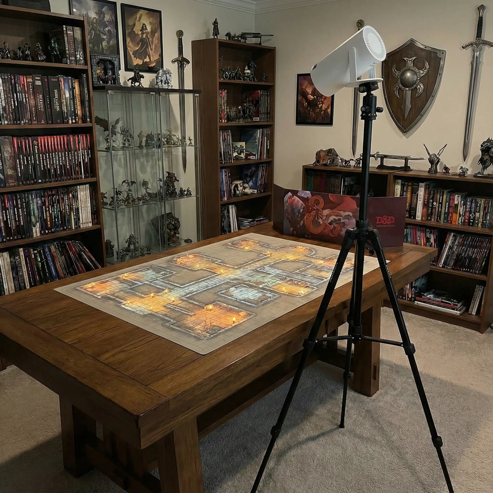 Transform your game room into taverns, dungeons, and arcane realms with cinematic ambient projection.