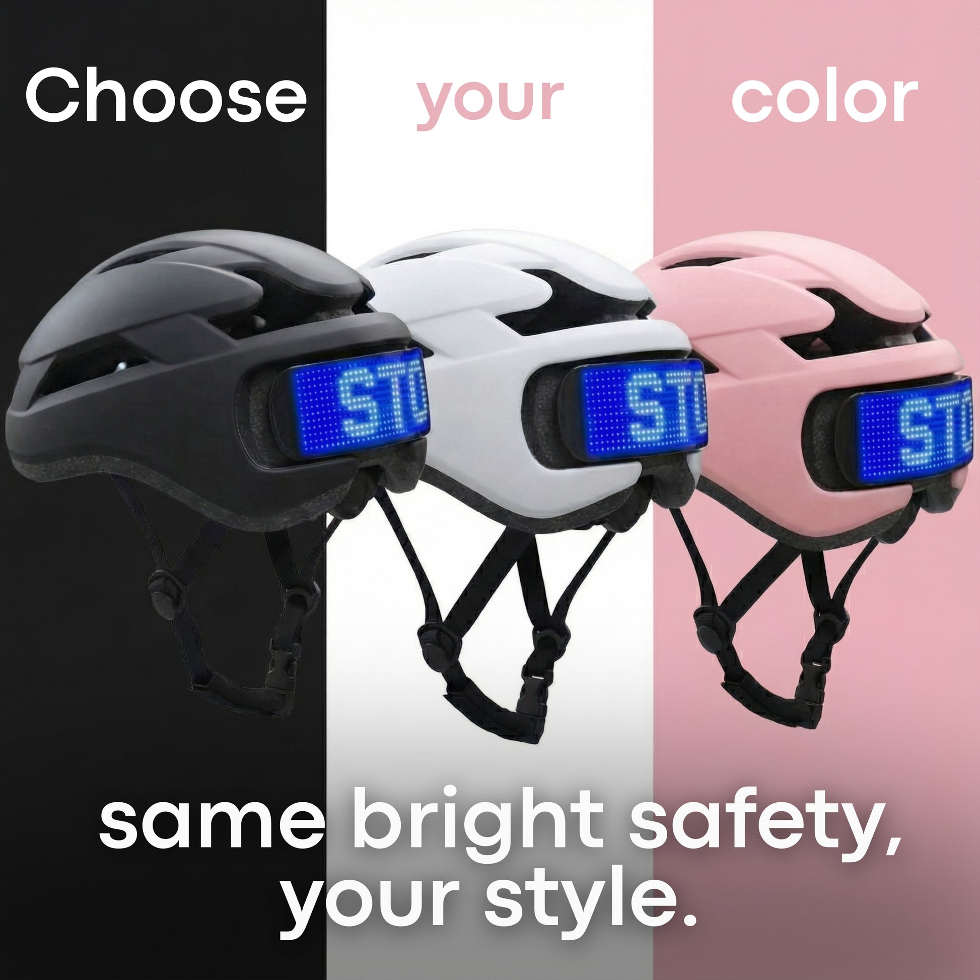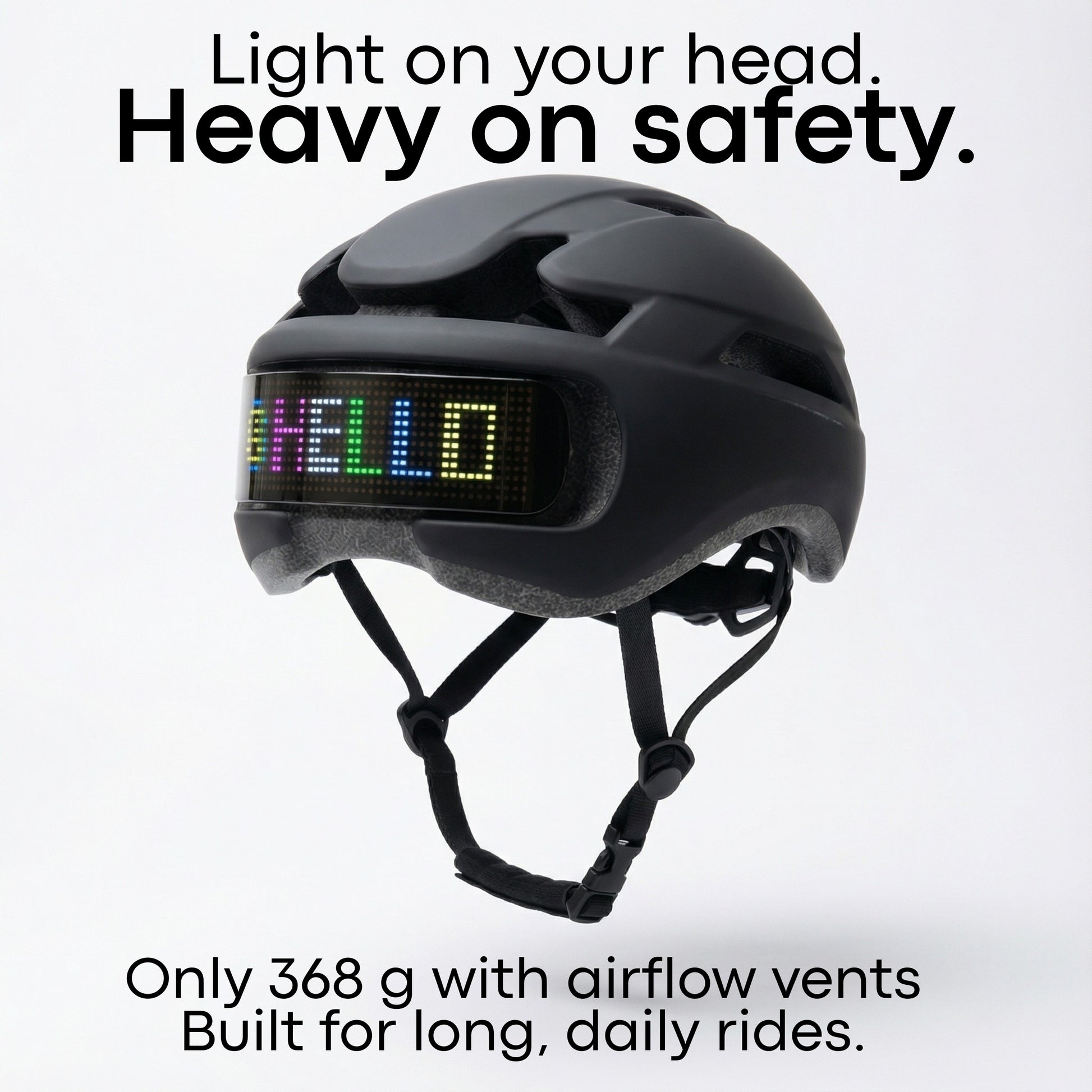 NOVA wraps certified impact protection in a full LED display so every turn, stop, and signal is clear from a distance.