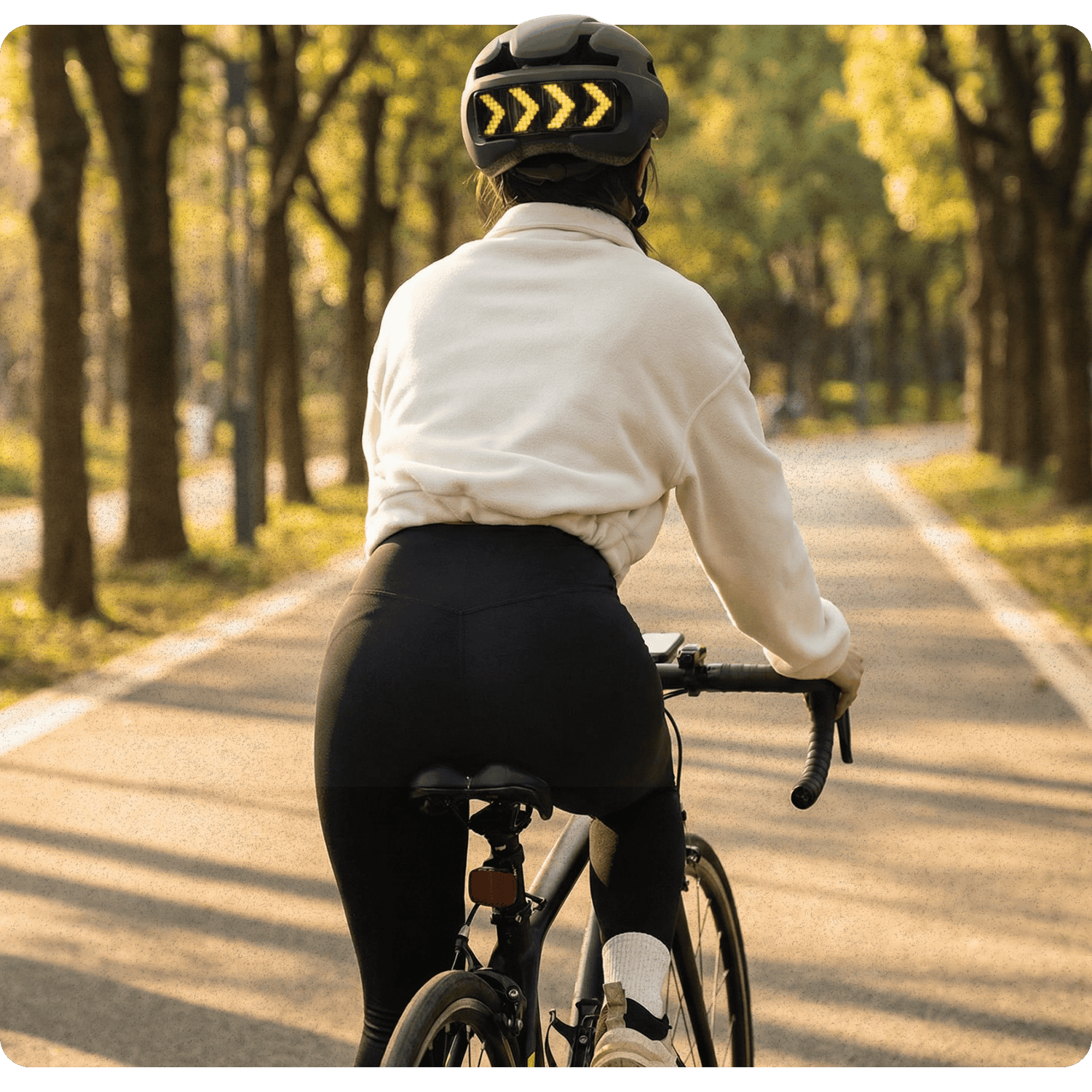 Bike, e-scooter or skateboard, the minimalist design fits in anywhere while keeping you visible from front and back in low light.