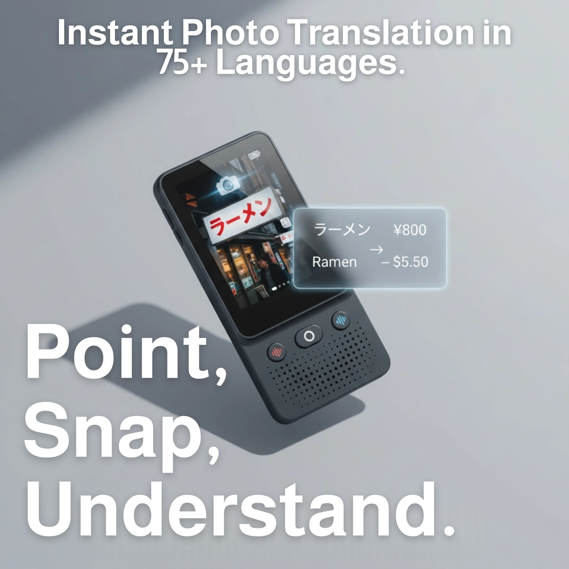 Just point and snap! Instantly translate menus, signs, documents, and labels using the built-in camera.